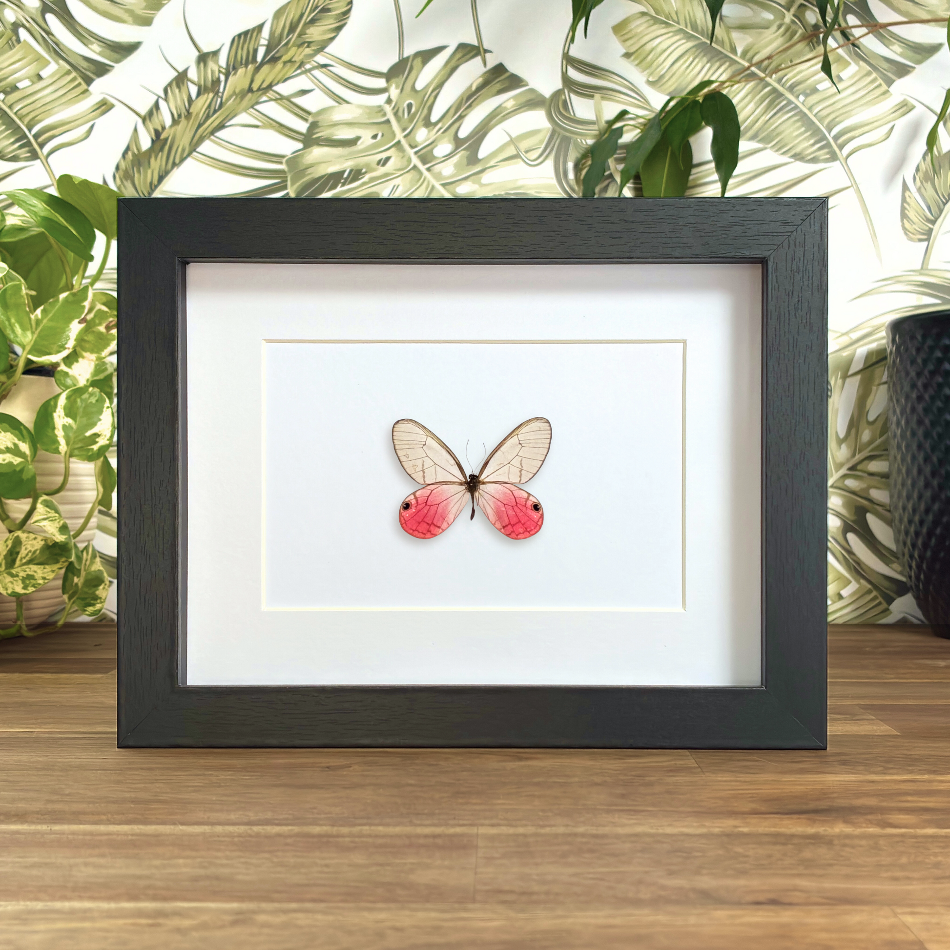 The Blushing phantom has clear wings that reach a wingspan of 5 - 6 cm. Their size may not be impressive, but the males have pink, blushing hindwings.